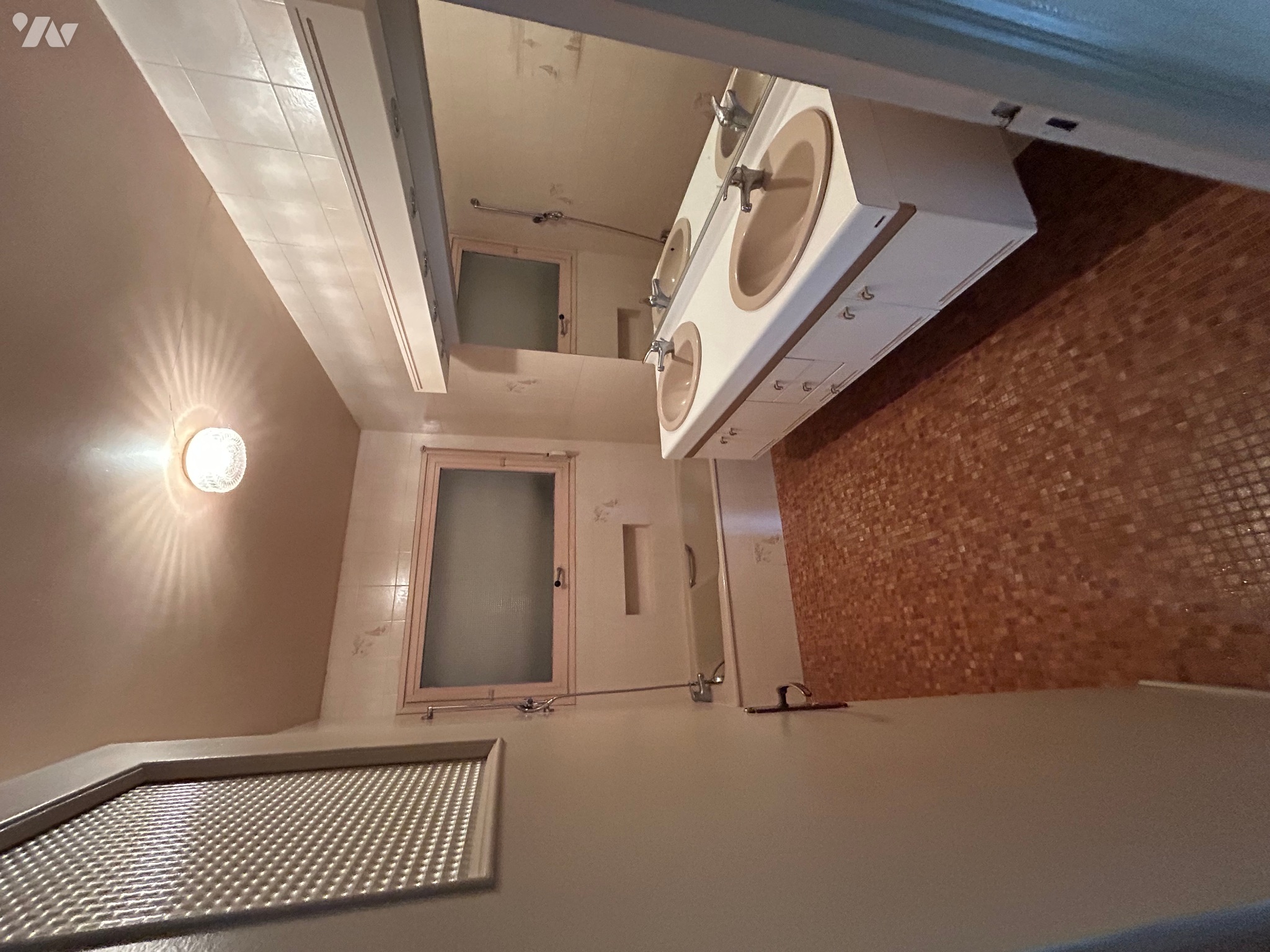 Une salle de bains et des toilettes séparées.
